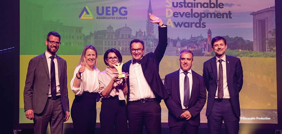 Am 30. November 2022 nahm unser Mitgliedsunternehmen Hermann Trollius GmbH in Brüssel gleich zwei Auszeichnungen des Europäischen Gesteinsverbands UEPG entgegen. Sie hatten sich damit gegen mehr als 67 Bewerbungen aus 15 Ländern durchgesetzt. Und das vor einer unabhängigen und hochkarätigen Jury, bestehend aus Yuri Bruinen de Bruin (EU Agency for Safety and Health at Work), Martin Harper (CEO BirdLife Europe and Central Asia), Bernd Lottermoser (University of Aachen), Brenda O’Brien (EU OSHA) sowie Guy Woodford (Aggregates Business Europe). Wir gratulieren sehr herzlich!