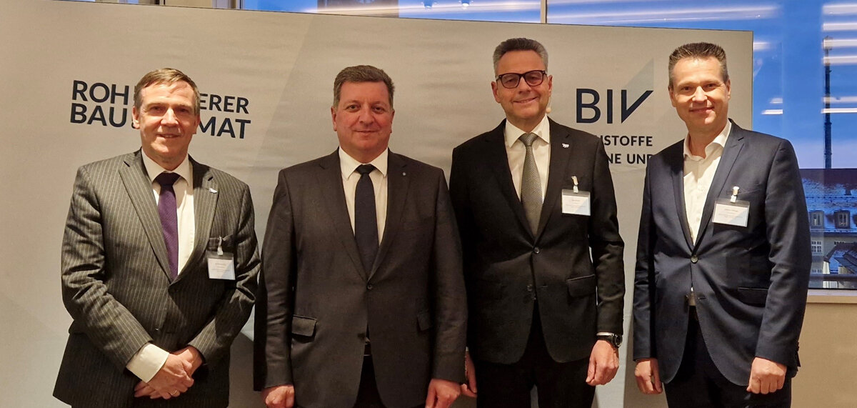 Der Präsident des Bayerischen Industrieverbandes Baustoffe, Steine und Erden e.V., Georg Fetzer, begrüßte am 28. Februar Bayerns Bauminister Christian Bernreiter und rund 130 Gäste aus Politik, Verwaltung, Wissenschaft und Wirtschaft im Bayerischen Hof in München. Drei große Themen, für die unsere heimischen Bau- und Rohstoffe die Grundlage sind, prägten den Abend – Wohnen, Bau und Verkehr in Bayern. „Sie sind die Hardware für die wirtschaftliche und gesellschaftspolitische Stabilität unseres Landes“, so Fetzer. Deshalb sendete der BIV-Präsident auch klare Botschaften an die Politik.