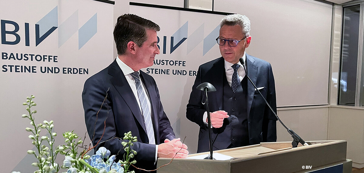 Der Schlüssel sei, die energieintensiven Industrien, die jetzt sicher vieles besser machen müssen und auch machen, unbedingt hier im Land zu behalten und deren Innovationskraft zum Erreichen der Klimaziele zu fördern. Gegenüber Staatsminister Beißwenger betonte BIV-Präsident Georg Fetzer entsprechend noch einmal, dass dieses Potenzial durch Abwanderung von Know-how nicht abgeben werden dürfe, im Sinne der Unabhängigkeit und um wieder Vorreiter statt Mitläufer zu sein. „Das Potenzial, klimaneutrale, mineralische Baustoffe zu produzieren, ist enorm“, so BIV-Präsident Georg Fetzer.