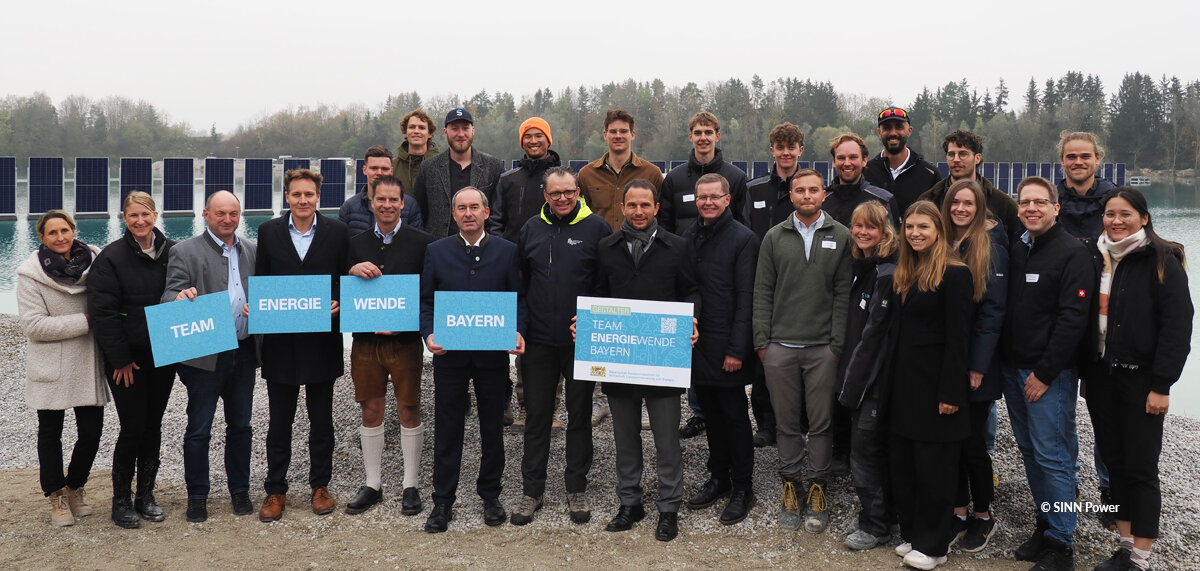Das Technologie-Unternehmen SINN Power und das Kies- und Quetschwerk Jais bauen die weltweit erste schwimmende Photovoltaik-Anlage mit vertikalen und unter Windlasten auslenkbaren PV-Modulen auf dem Baggersee in Gilching. Dieses Leuchtturmprojekt ist am 6. November 2024 als „Gestalter im Team Energiewende Bayern“ von Bayerns Energieminister Hubert Aiwanger in Gilching ausgezeichnet worden.